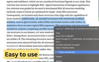 Clarify là một tiện ích mở rộng miễn phí trên Chrome được thiết kế để nâng cao khả năng hiểu biết của người dùng bằng cách cung cấp các giải thích được tạo ra bởi AI cho văn bản được chọn trên bất kỳ trang web nào. Nó cho phép người dùng dễ dàng hiểu các thuật ngữ khoa học phức tạp, bài báo tin tức, khái niệm toán học, và nhiều hơn nữa. Bằng cách đơn giản là làm nổi bật văn bản và sử dụng menu chuột phải hoặc nhấp đúp, người dùng có thể truy cập các giải thích nhanh chóng được hỗ trợ bởi các mô hình ngôn ngữ lớn mã nguồn mở.